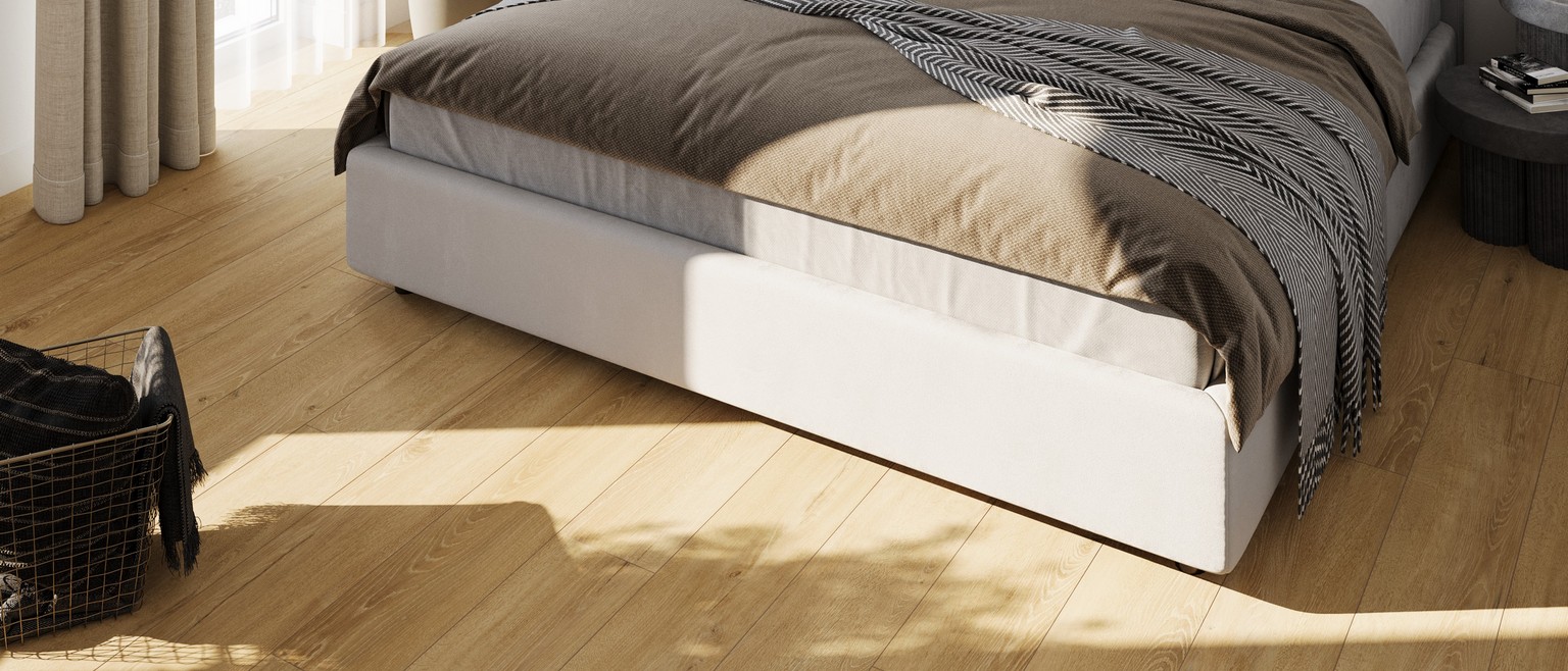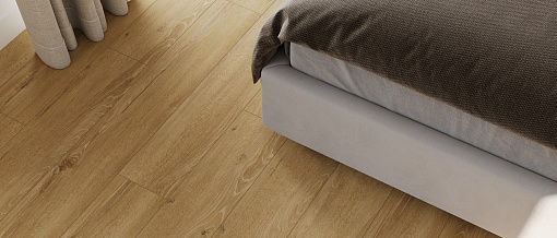 Толщина 12 мм обеспечивает повышенную прочность, лучшую шумоизоляцию и более комфортные ощущения при ходьбе. Четырёхсторонняя фаска подчёркивает формат доски и придаёт полу эффект массивной древесины.